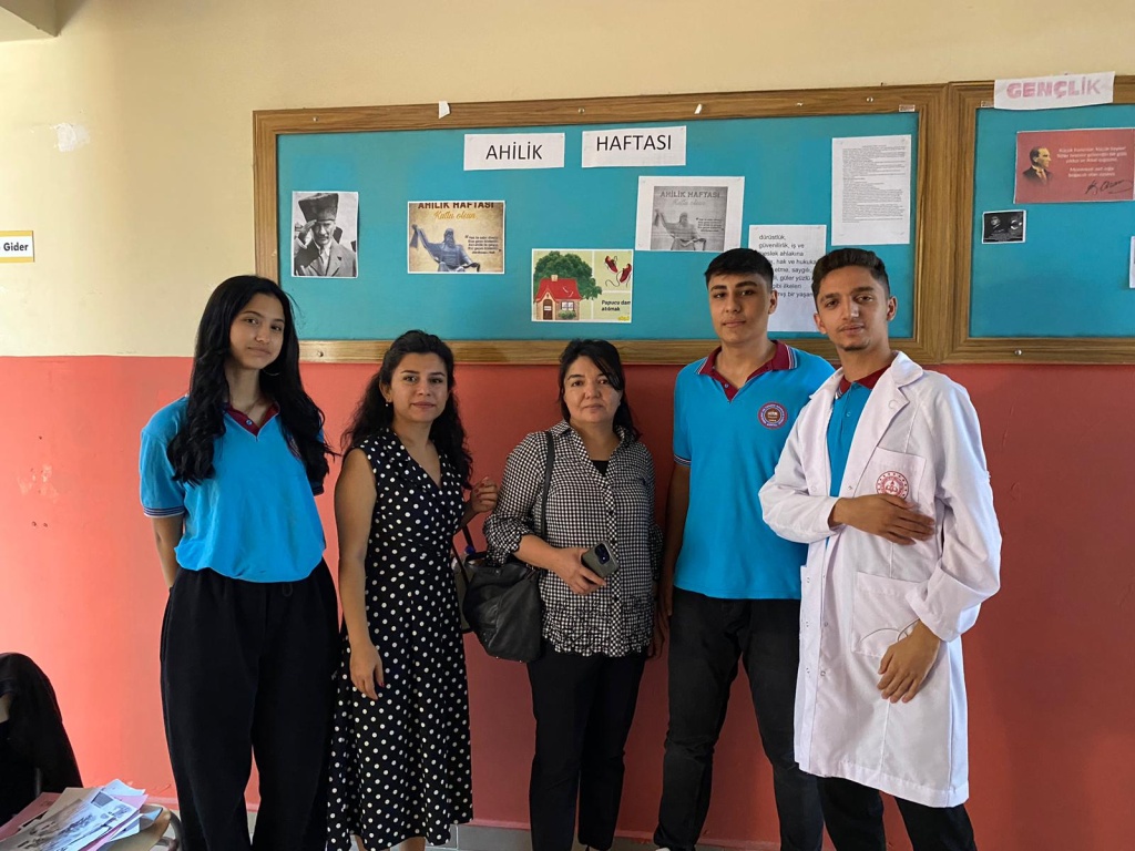 Okul olarak, Ahilik Haftası kapsamında düzenlenen etkinliklerde Adalet, Muhasebe ve Finansman, Hasta ve Yaşlı Hizmetleri ve Büro Yönetimi alanlarımızla okul bünyesinde etkinlik düzenlendi. Etkinlikte, ahiliğin temel ilkeleri olan dürüstlük, kardeşlik, meslek ahlakı ve dayanışmanın önemi vurgulanmış; öğrencilerimizin milli ve manevi değerlerle bütünleşmiş mesleki eğitim vizyonuna katkı sağlanmıştır. Ahiliğin ilkeleri okundu. İlkelerle ilgili deyimlerden bahsedildi. Papucu dama atılmak deyiminin hikayesi okundu. Öğrencilere Ahiliği belgesel, kısa film izletildi. Öğretmenlerimiz tarafından Ahiliğin tanımı, önemi ve günümüzdeki yansımaları hakkında bilgilendirme sunumu yapıldı.