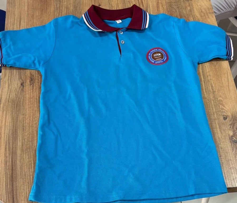 Üst Kıyafet: Mavi tişört bordro yakalı, yaka ucu mavi ve beyaz çizgili, kol uçları bordro ve beyaz çizgili okulun adının ve logosunun yer aldığı kıyafetleri giyebileceklerdir.